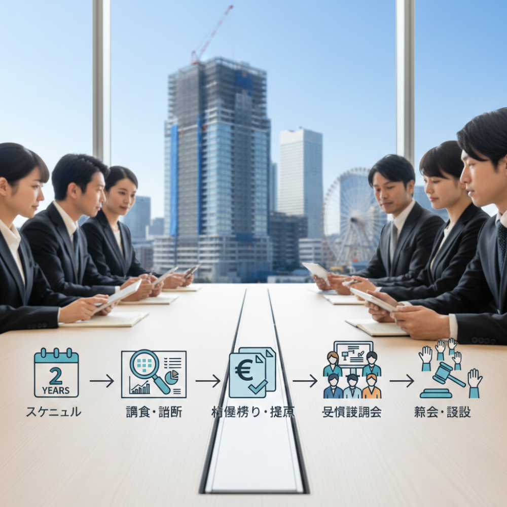マンションの大規模改修工事は、何となく進めると後でトラブルになりがち。特に横浜のようにマンション数が多く、業者の選択肢も多いエリアでは、明確な選定フローをつくっておくことが大切です。
